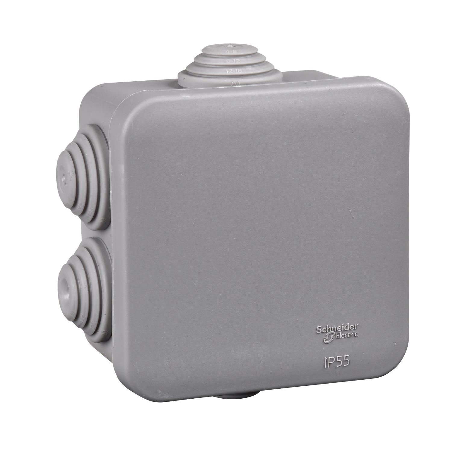 This square surface mounted junction box IMT35090 comes with 6 x 20 mm grommets and clipped-on cover Color white, dimensions: width 95 mm, height 95 mm, depth 48 mm Including screw collar caps for extra protection of the screw heads Mechanical protection IK07, flame resistance 750 °C Material: body and cover PP (polypropylene) This surface mounted box is classified IP55 that provides safe installations in rough environments, indoors as well as outdoors, exposed to water and dust like Industry, farms, parking facilities or even a bathroom at home Sometimes you need electricity where it really should be impossible to install it, like in wet or dusty places, or where electricity has not been planned at all You needn.