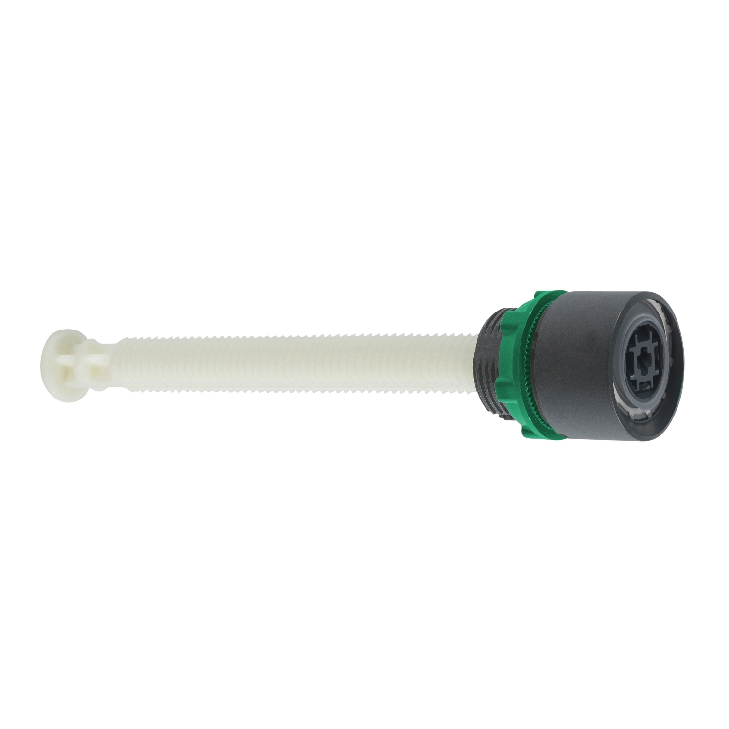 This Harmony XB5, manual overload reset pushbutton without cap has an actuation distance from 17mm to 120mm. This complete manual overload reset pushbutton is supplied without cap for customization use with your desired machine operations. It provides a robust and precise control when it is required to reset your machines and processes. It is easily installed into standard 22mm diameter panel cut-outs. It is impact resistant, dust resistant, water resistant and vibration resistant thanks to its IP66, making it ideal for operation in harsh environments. Its plastic bezel makes it ideal for applications requiring good resistance to chemical agents and/or double electrical insulation..