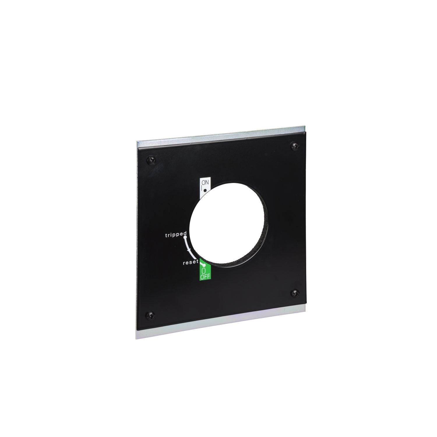 It is a direct rotary handle for Compact NSX 400/630 and PowerPact Multistandard L frames devices. It is suitable for isolation and it is used for the control of an MCC switchboard. It maintains the access to trip unit settings and to the push to trip button. It is equipped with a standard black handle. There is an indication of the three device positions O (OFF), I (ON) and tripped. The degrees of protection are IP43 and IK07. The switchboard door locking is depending on the device position. The switchboard door cannot be opened if the circuit breaker is ON or in tripped position. The circuit breaker cannot be closed if the door is open..