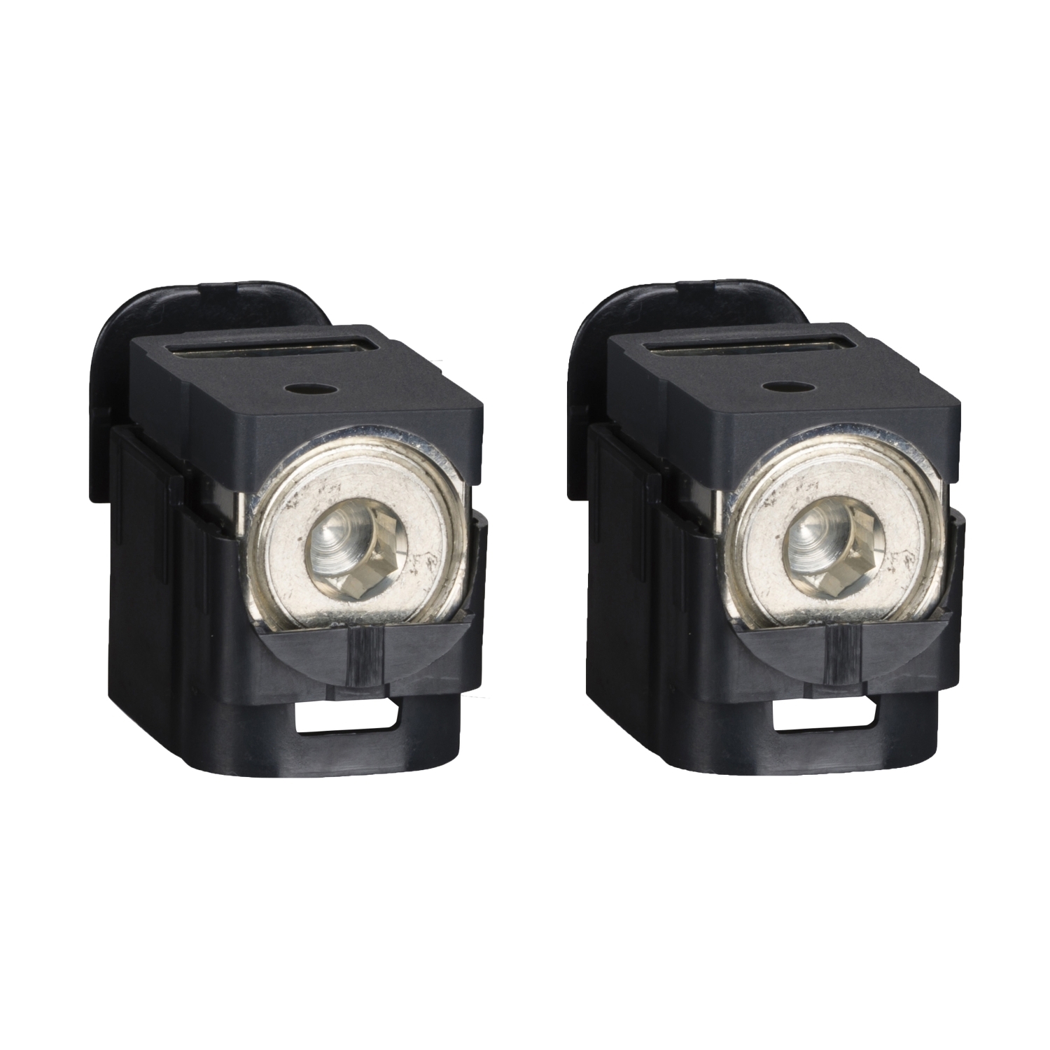 These accessories are aluminium bare cable connectors for Compact NSX 100/160/250. These connectors can receive 1 copper or aluminium cables from 25mm² to 95mm². The connectors snap directly on to the device terminals or are secured by clips to terminal extensions. The rated current is up to 250 A. They are sold by set of 2 parts..