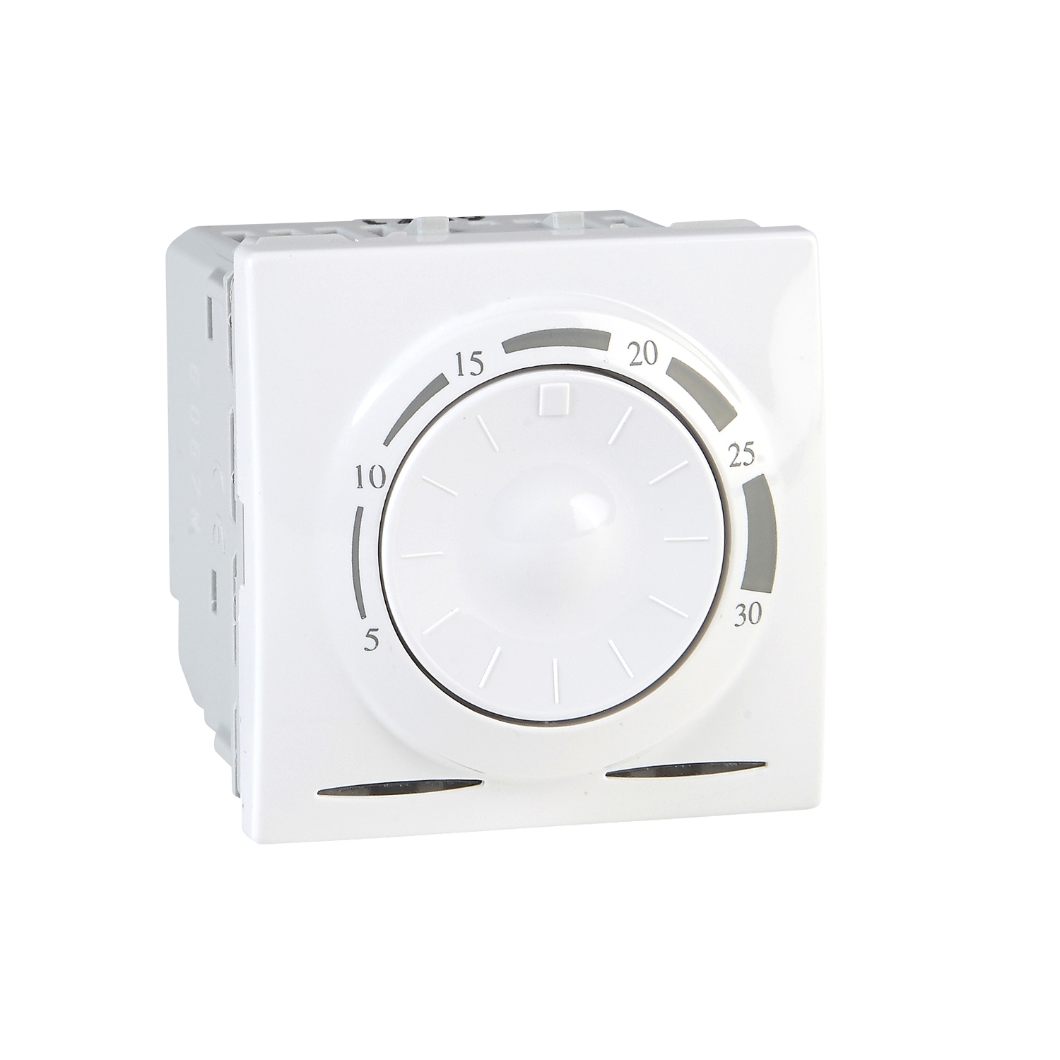 The Electronic room thermostat is in the Unica design It is designed for heating and cooling It is aimed for homes with local heating or central heating, or local air-conditioning Temperature range can be set from +5 to 30⁰C The load handling is 8A resistive, 5A inductive Pf 0,8 The thermostat is of white color.