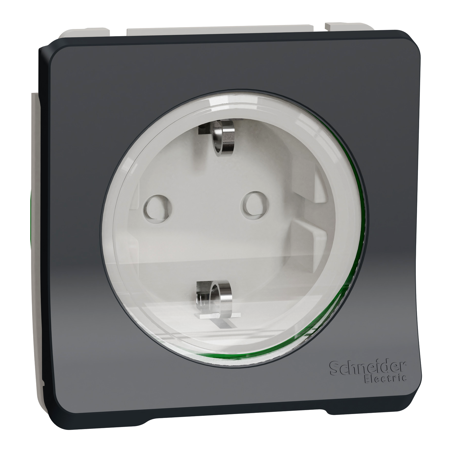 Mureva Styl power socket-outlet MUR36135 is a robust device. The Schuko 2P + E with shutters has an IP55 protective index that ensures its waterproofness. It is an innovative socket-outlet with its LED that makes it visible in the dark. The ergonomic design of the 16A device snaps and un-snaps easily with only one hand thanks to the large cabling space. It is also resistant to the harshest environments and can be used indoor and outdoor. The transparent lid allows to see the light to locate it easily but also to avoid confusing a socket with a switch..