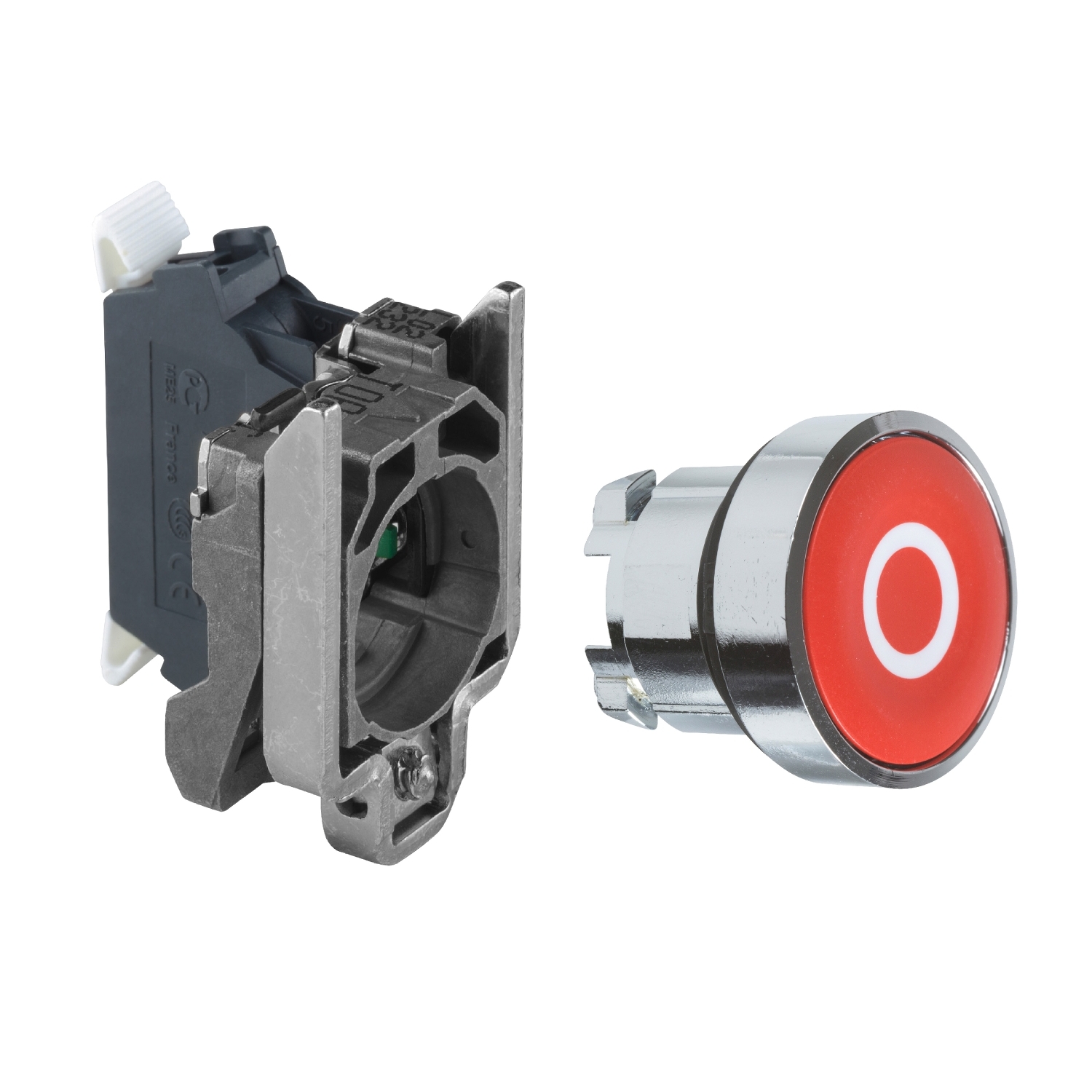 This Harmony XB4 modular push button operates with a spring return / impulse mechanism. It has a chromium-plated metal bezel and is supplied with a red flush cap, marked with O (white). It features 1 NC slow break contact and screw-clamp terminals connection type. This push button provides an ergonomic interface for controlling your machines. It is easily installed into standard 22mm diameter panel cut-outs. It is impact resistant, dust resistant, water resistant and vibration resistant thanks to its IP66 / IP67 / IP69 / IP69K, making it ideal for operation in harsh environments. It weighs 80g. Thanks to its simplicity of installation, flexibility, and robustness, it meets the requirements of the majority of industrial applications.