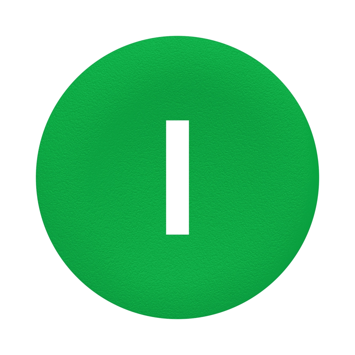 This Harmony ZB, flush green marked push button cap has a round shape with "I" symbol. This push button cap provides an ergonomic interface for controlling your machine thanks to its flush element. It is supplied ready engraved with a marking relevant to machine operation. It is easily installed and replaced on compatible complete push-button units. It has clear and resilient symbol marking on the cap..