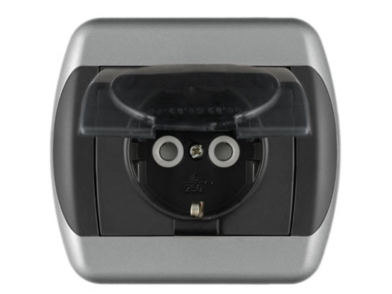 PRIKLJUCNICA DVOPOLNA SA TRANSPARENTNIM POKLOPCEM I ZASTITOM ROYAL EX. CRNO-SREB 15.72.064