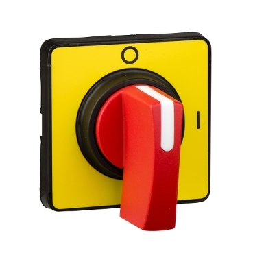 glava grebenastog prekidača 45 x 45 mm - žuta boja - crvena ručica - O-I
